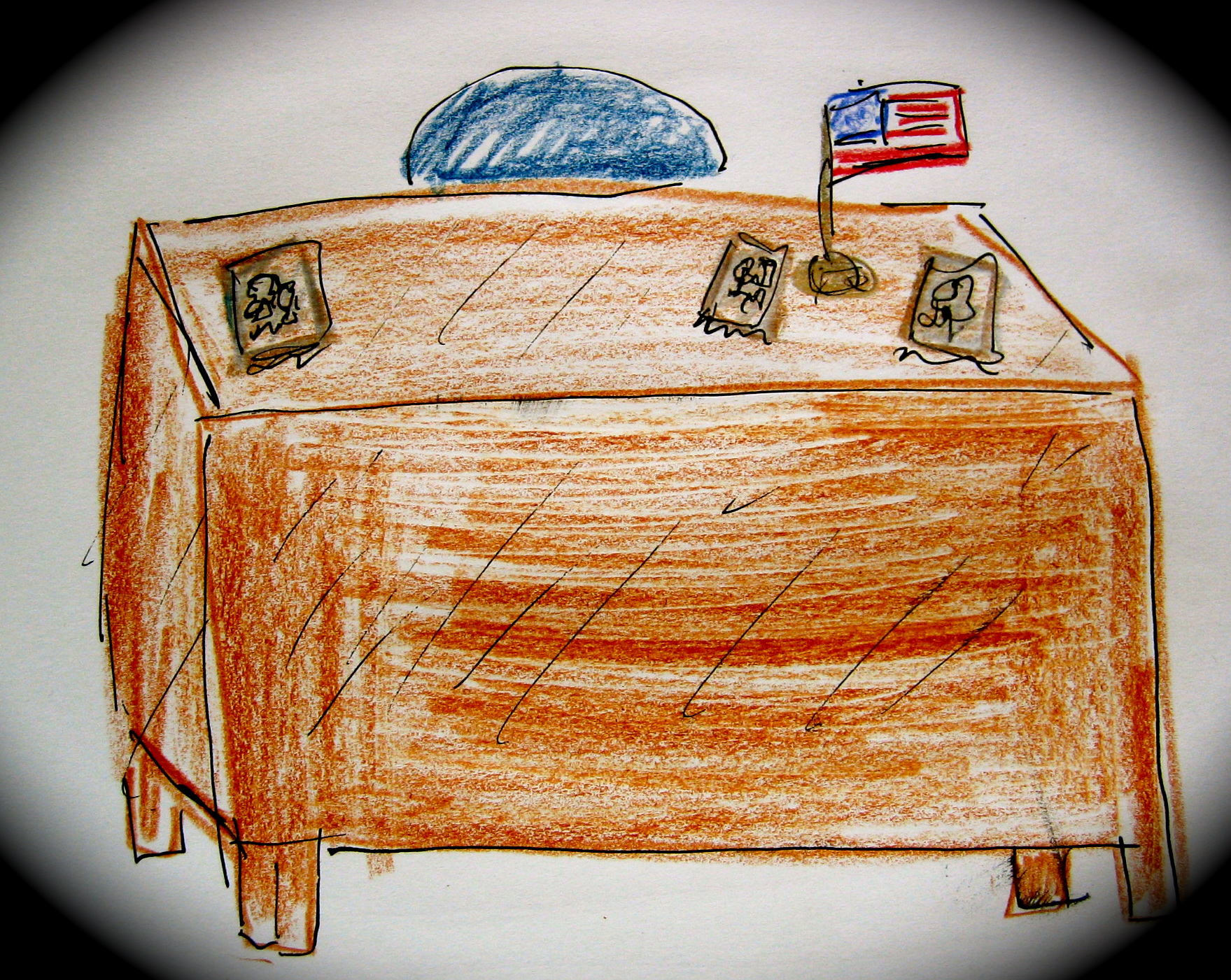 My dislike does not particularly target the Oval Office desk;  I dislike desks generally.   I am a floor sitter (or bed sitter) by nature.  When I do sit at a desk, I tend to squat or sit cross-legged.  (Thank God for  “modesty panels.”)