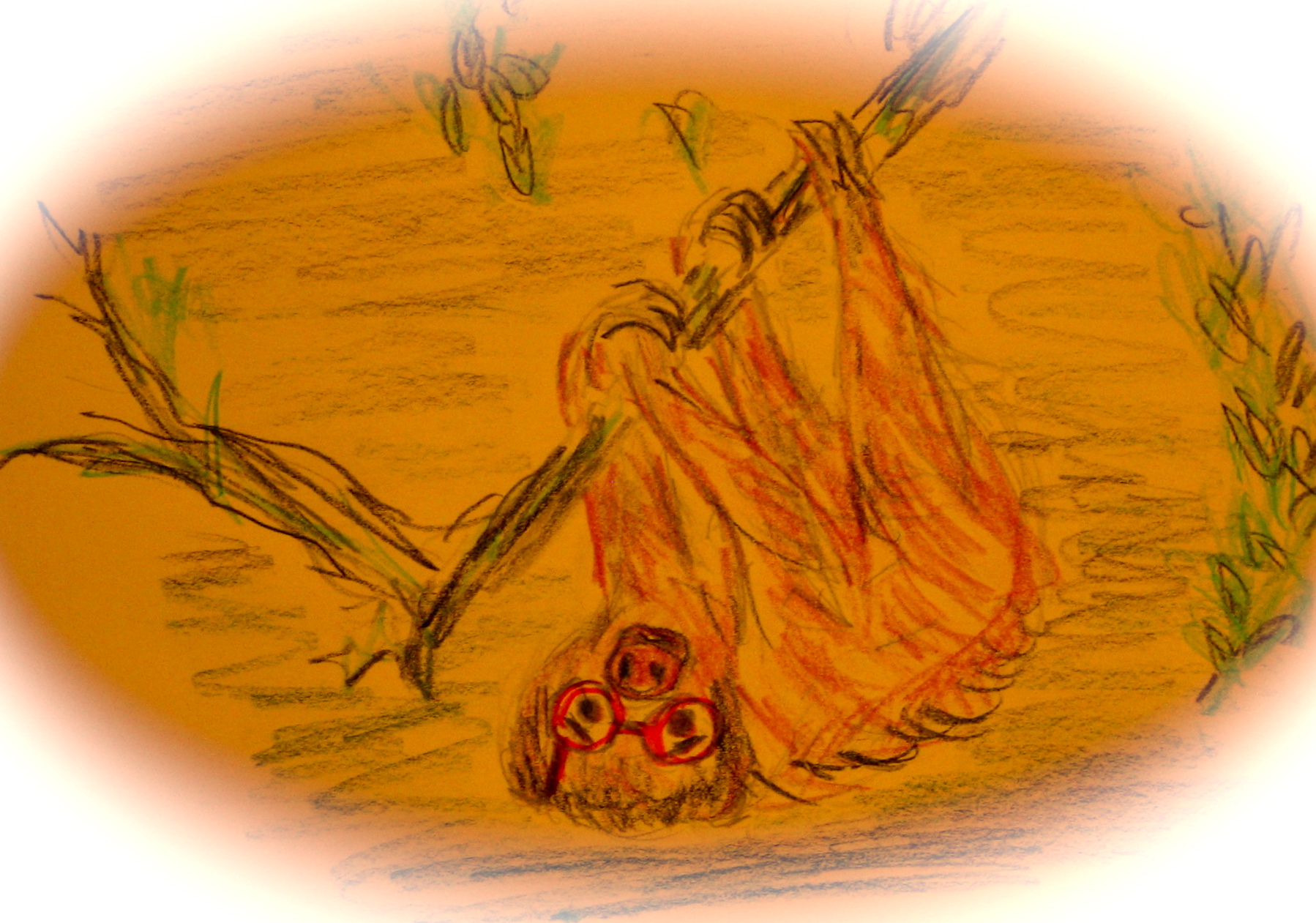 Tags: difficulties of too little sleep, do people need sleep, drawing of Sloth, manicddaily, ManicdDaily colored pencil drawing, not functioning on no-sleep, silliness of no sleep, Sloth image, three-toed sloth