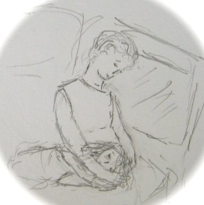 Tags: dealing with grief, dealing with sadness, drawing of mother and child in backseat of car, heartache, image of mother daughter, limning feelings, manicddaily, Manicddaily pencil drawing, shaping feelings, soothing grief, using writing to get perspective on sadness, using writing to soothe grief