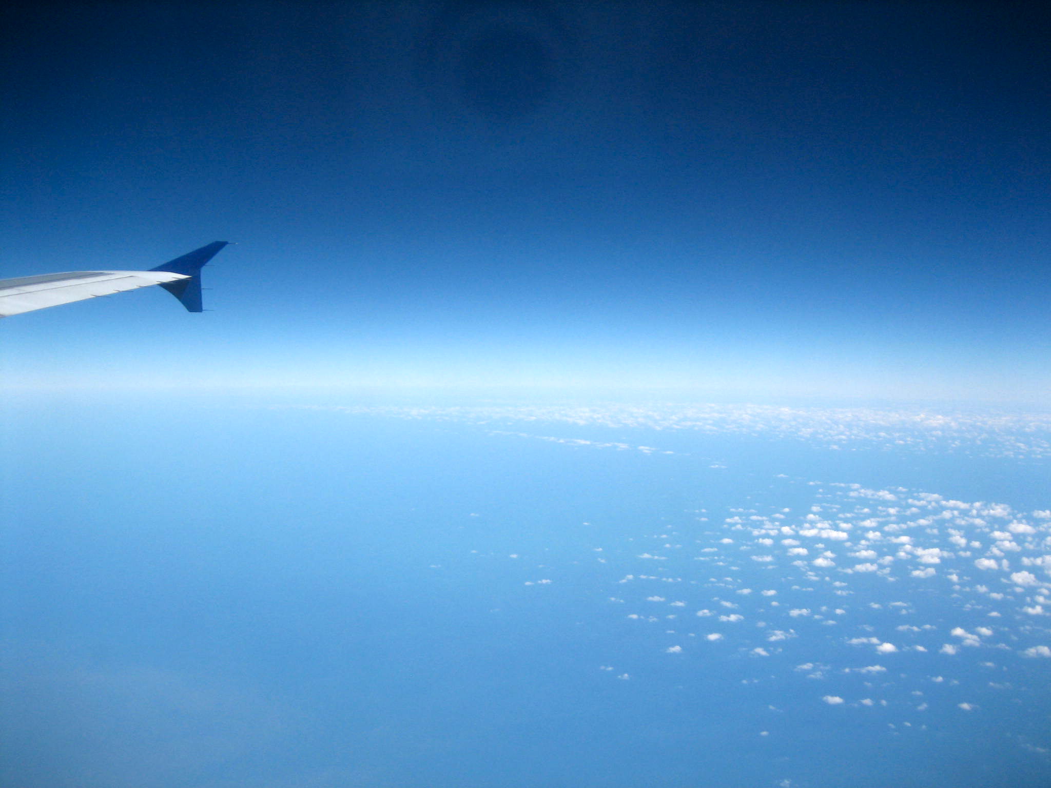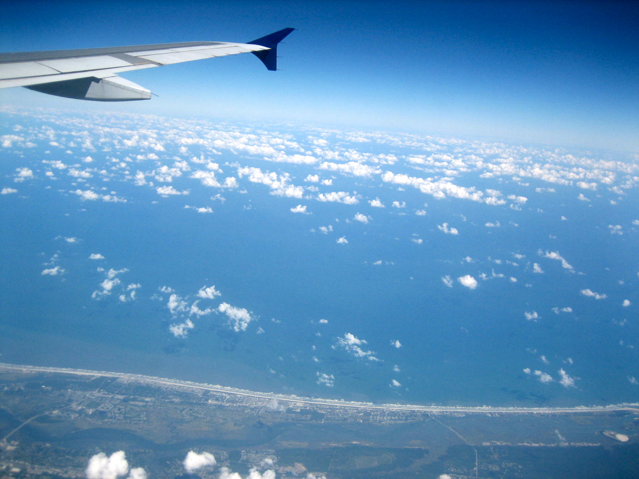 The clouds are petering out.  The shore is no longer visible.  Enjoy the sky.  Still blue, still free, for now.