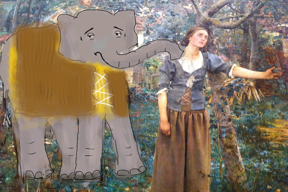 Explore posts in the same categories: elephants, poetryTags: art appreciation, Brushes App, elephants, Elephants at the Met, fine art with elephants, Georges de la Tour, iPhone art, Joan of Arc with Elephant, Jules Bastien-LePage, Karin Gustafson elephants, Karin Gustafson poetry, manicddaily, poem about art appreciation, poem about museums