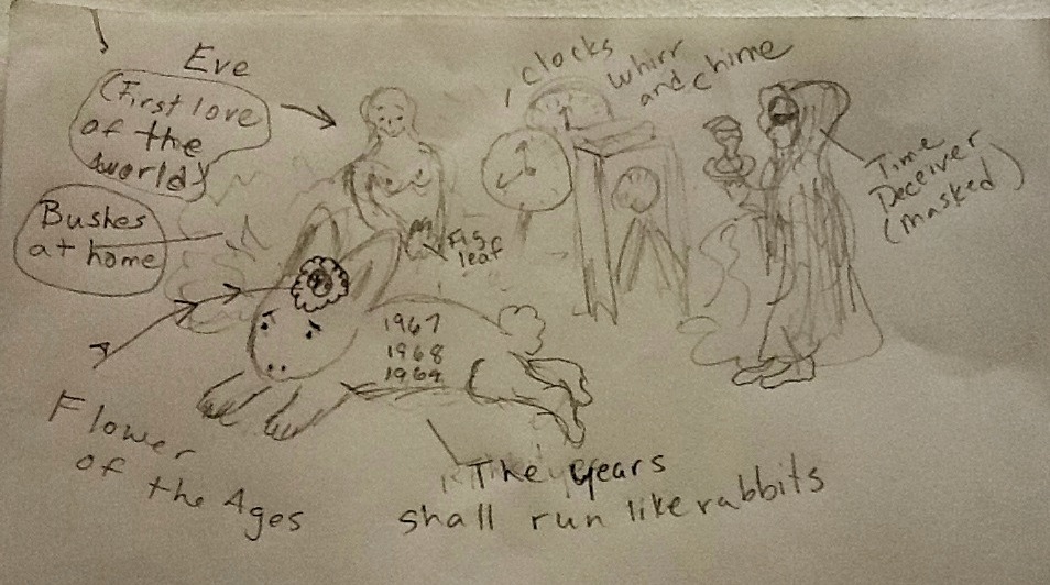And it is quite interesting to watch one’s head strain to come up with mnemonics. I could only learn the Auden this morning by hopscotching up the front walkway of my childhood home (jumping over China and Africa shaking hands as they were doused by rivers and salmon, noticing rabbits bedecked with flowers and numbers around the bushes by my childhood front door, a naked judge curled up in my old front closet (under the coats and next to a ghastly Father Time). As the poem continued, my mother lay, arm over head, on our deep green couch, which quickly cratered into a valley filled with some powder that looked suspiciously like cocaine. I ended up with toy cars in our old moveable dishwasher, looking out the window at the man who had once been our red-faced and very bow-legged neighbor, adjusting the sprinkler by his hedge.