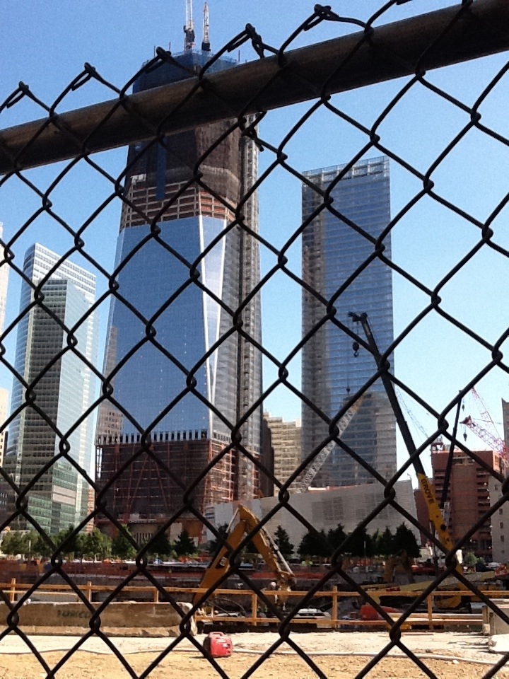 June 29, 2011As followers of this blog may know, I walk by the old World Trade Center Site – Ground Zero–close to ten times a week. I confess to not paying much attention to it though. The site/sight is still painful to me–I am uncomfortable both with its blankness (which brings up loss) and its busyness (which seems somehow heedless of loss.)