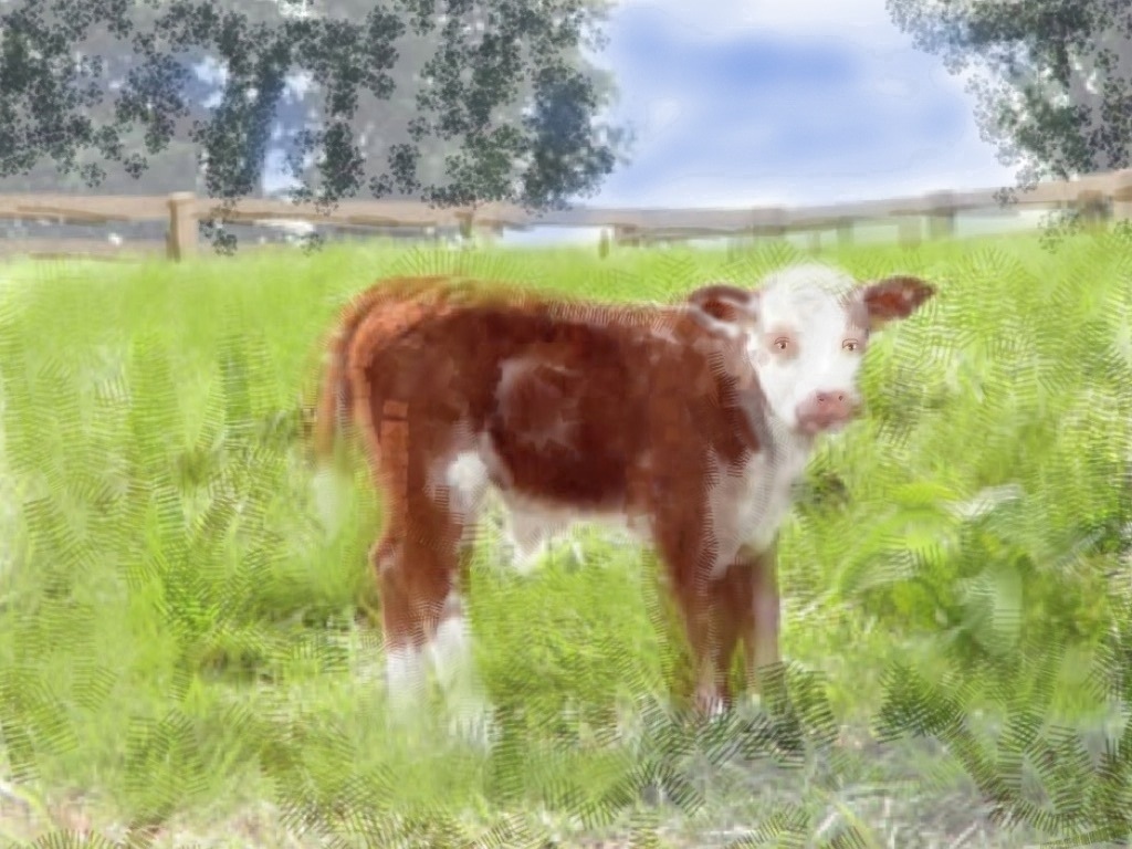 And then, as the call continues, the iPad also lets me paint a cow. A cow! I don’t know why I chose a cow, but there it is, a cow! Which is part painting, part photo, part erasure, part drawing–an act of concentration, and yet as I’m working on it I am also better able to listen to the call.