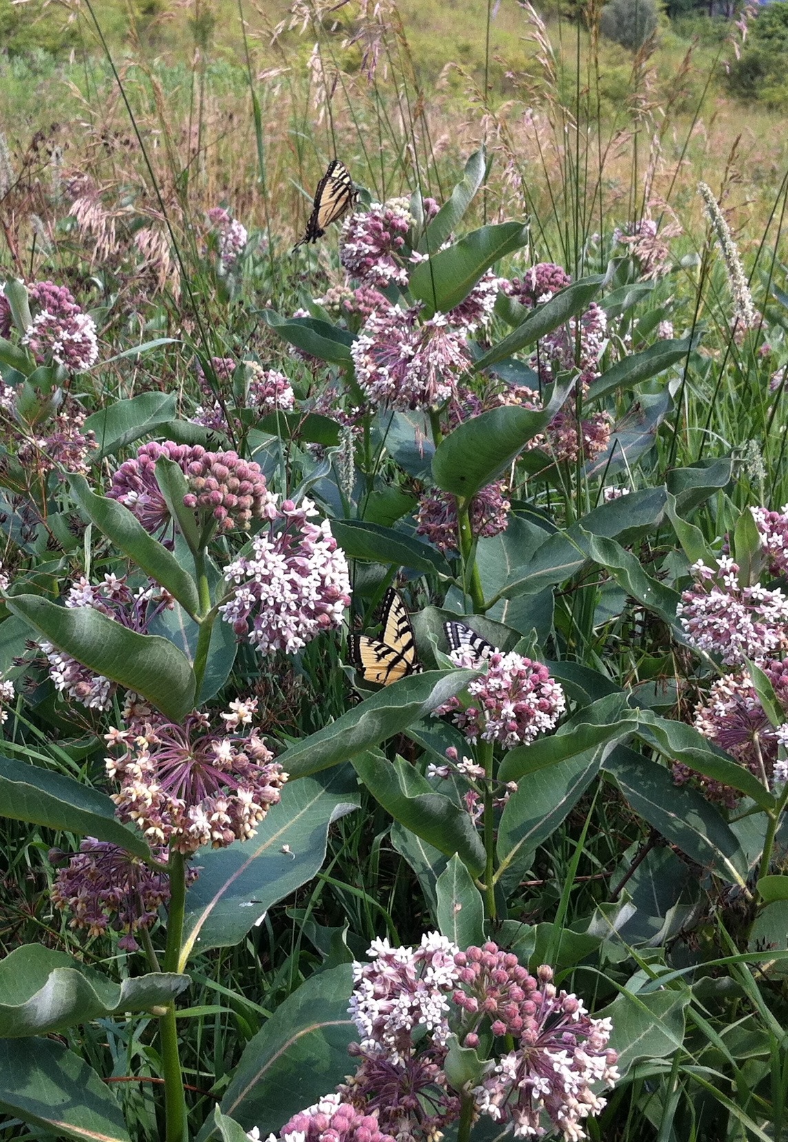 My pic is of milkweed which seems quite attractive to butterflies. It is undoctored – there’s the shadow of a third swallowtail in there–crazy.