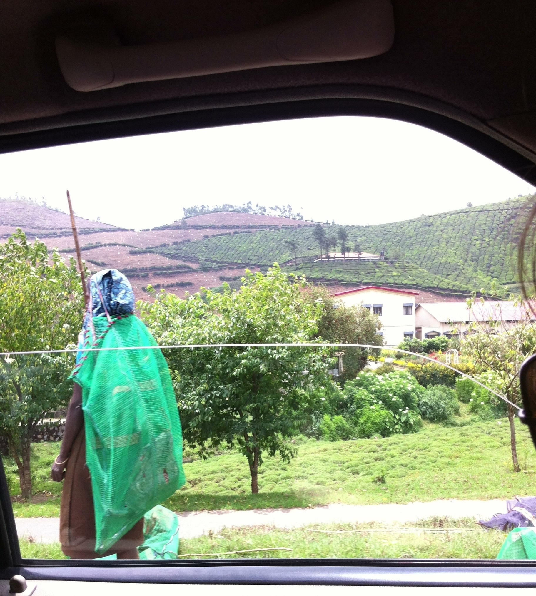 Leaving the Western Ghats and Tea plantation area of Kerala this morning but wanted to post a few not very close pictures I took of tea pickers. They are all women. They wear big plastic sheets (bags?) tied at the waist for clothing. Maybe because of tea stains? They wear tump lines on their heads, the baskets on their backs. They seem to live in plantation housing. The tea workers were originally brought by the British from Tamil Nadu, a state just East of here, in order to work. My understanding is that current workers are descendants of the original workers.