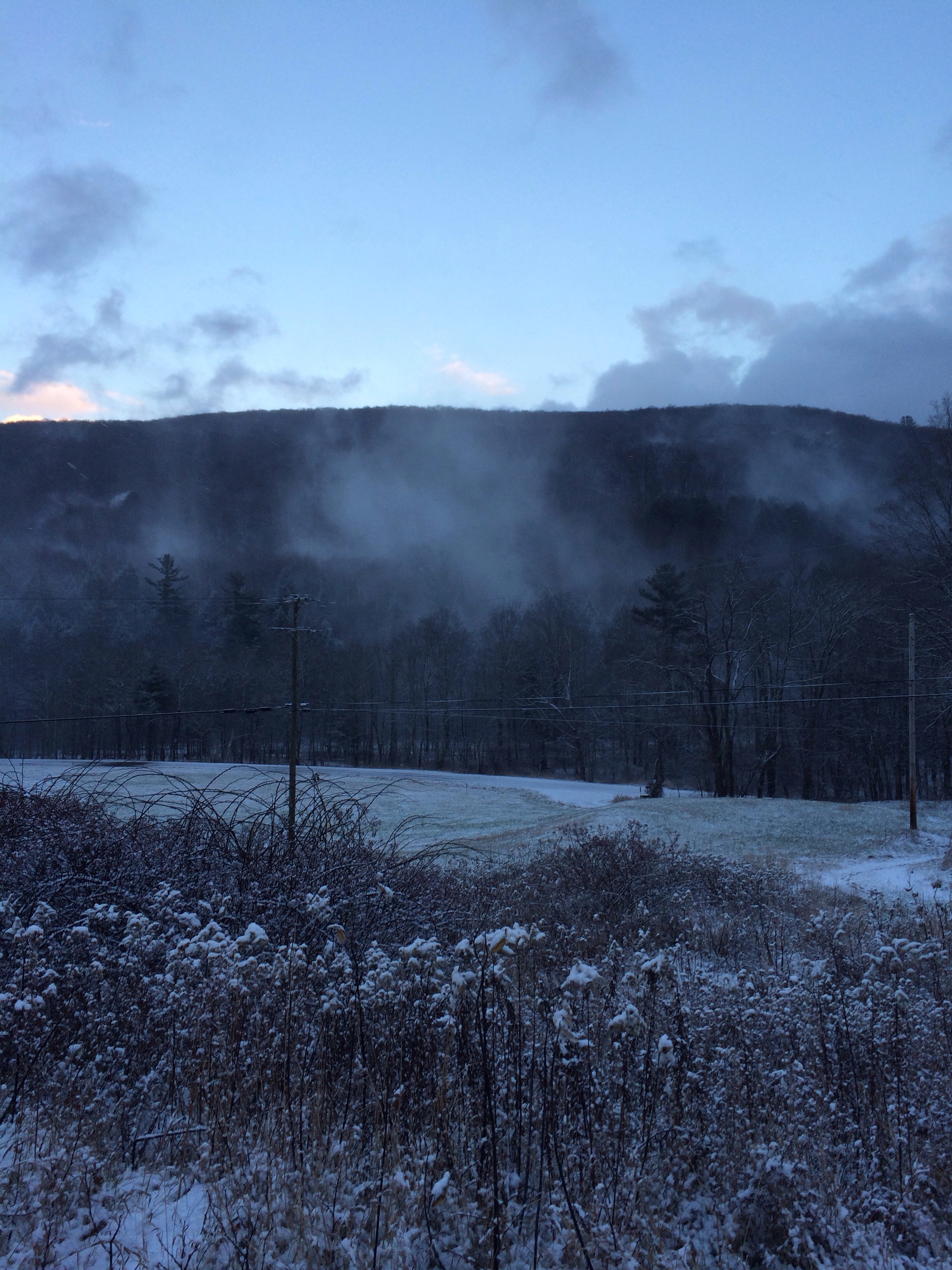The above photograph is not black and white, but it has a very monochromatic feel (and in the distance are forests covering with snow.)