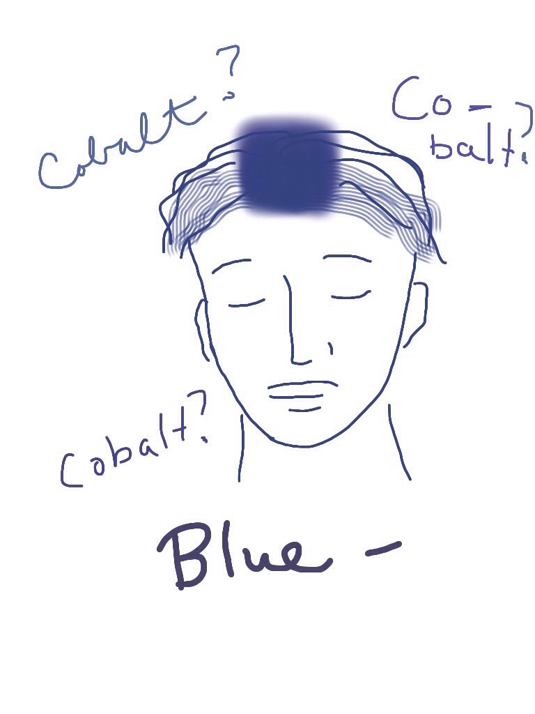 Cobalt is a wonderful deep blue made of salts of alumina, sindered, meaning heated very hot. It is used in making pigments, but also for a deep blue glass, and the blues in Chinese porcelain. Cerulean and Prussian are other blues–55 packed into one for the G-man--also for Sam Peralta of dVerse Poets Pub.