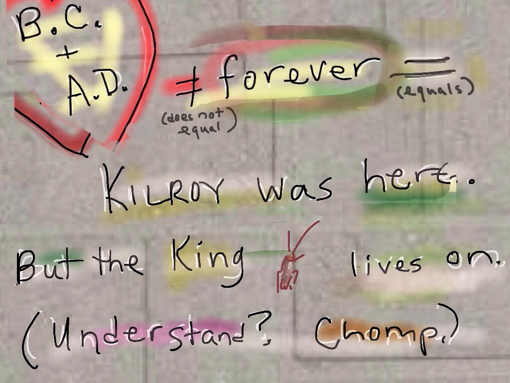 Nobody said it had to be a GOOD poem a day. Here’s one for Susan’s perfectly great prompt on With Real Toads to write a poem you imagine as grafitti. Process note– some refer to B.C. as B.C.E. (“Before Common Era.”)