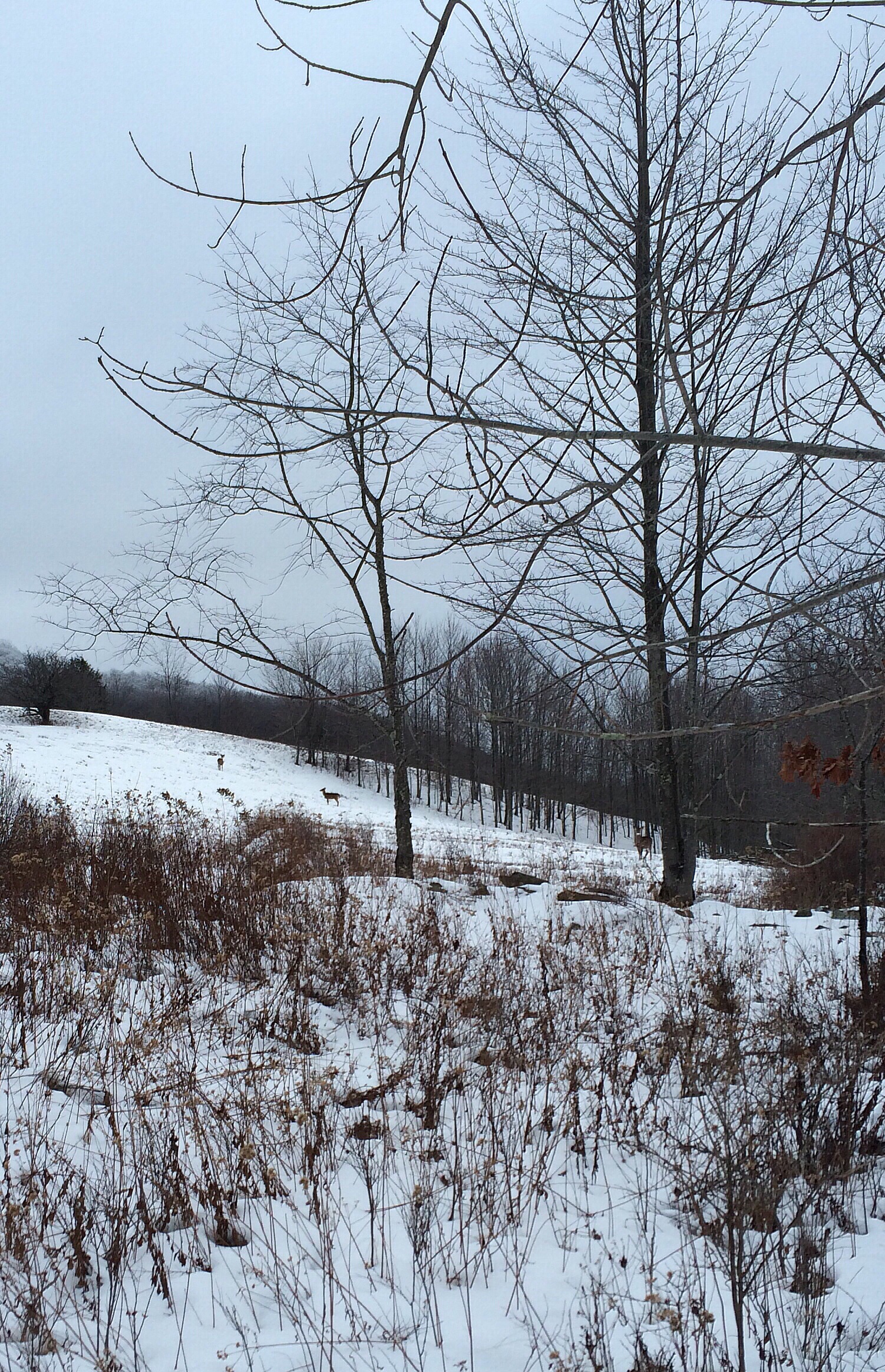 Another little poem about cold, belatedly posted for With Real Toads Tuesday platform.   (In the photo, which is mine, and taken at a different time than thoughts for the poem–so doesn’t really fit it–you can see three deer.)