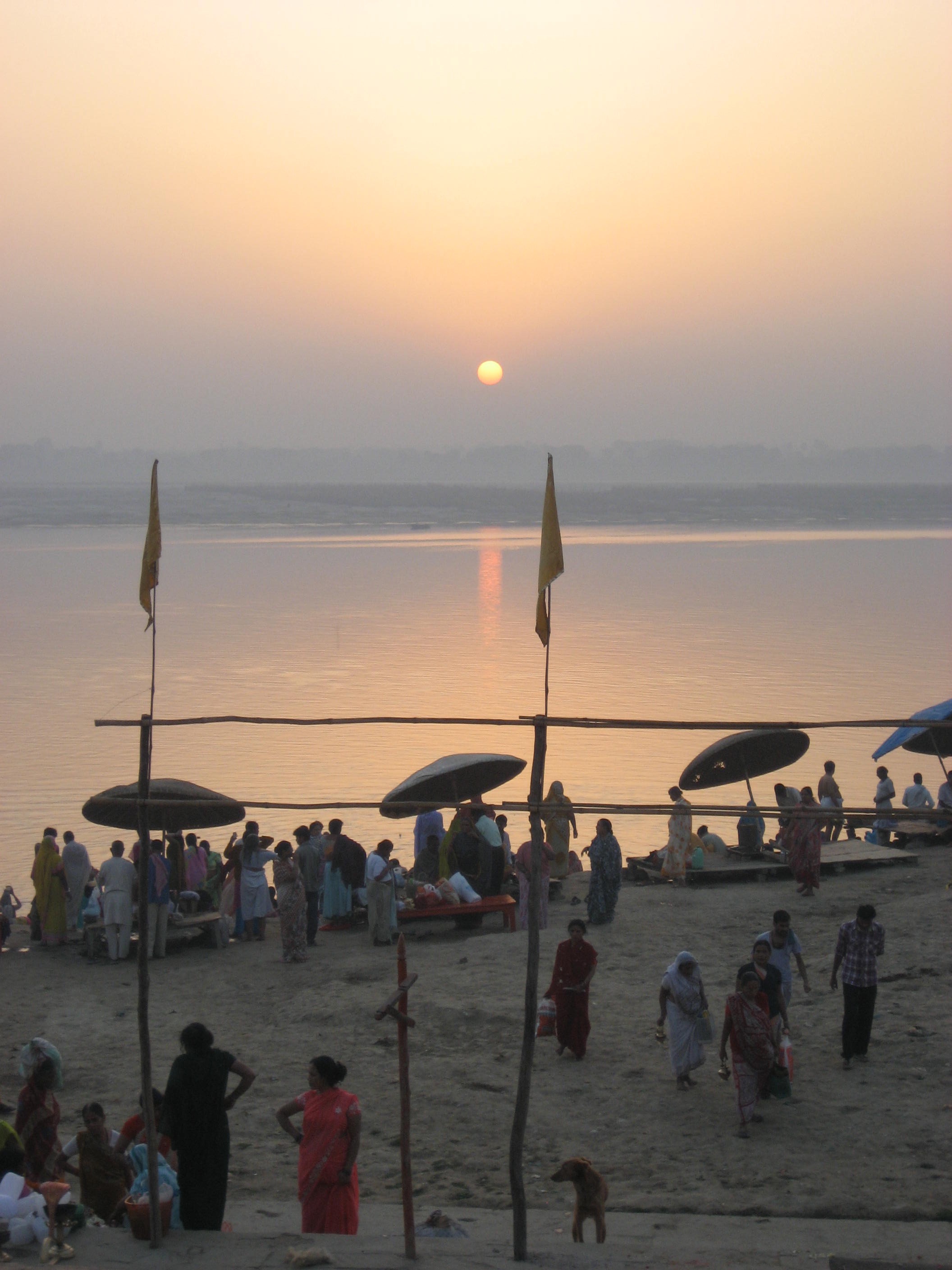 As a process note, Varanasi is one of the most holy Hindu pilgrimage cities in India; and the Ganges, a river that runs through it, is considered a holy river. Ghat is the sanskrit/Hindi word for river bank, and is what the various parts of the banks of the Ganges in Varanasi are called; these include Manikarnika Ghat which is a cremation ghat, also called the burning ghat. Photo is by my daughter, Meredith Martin.