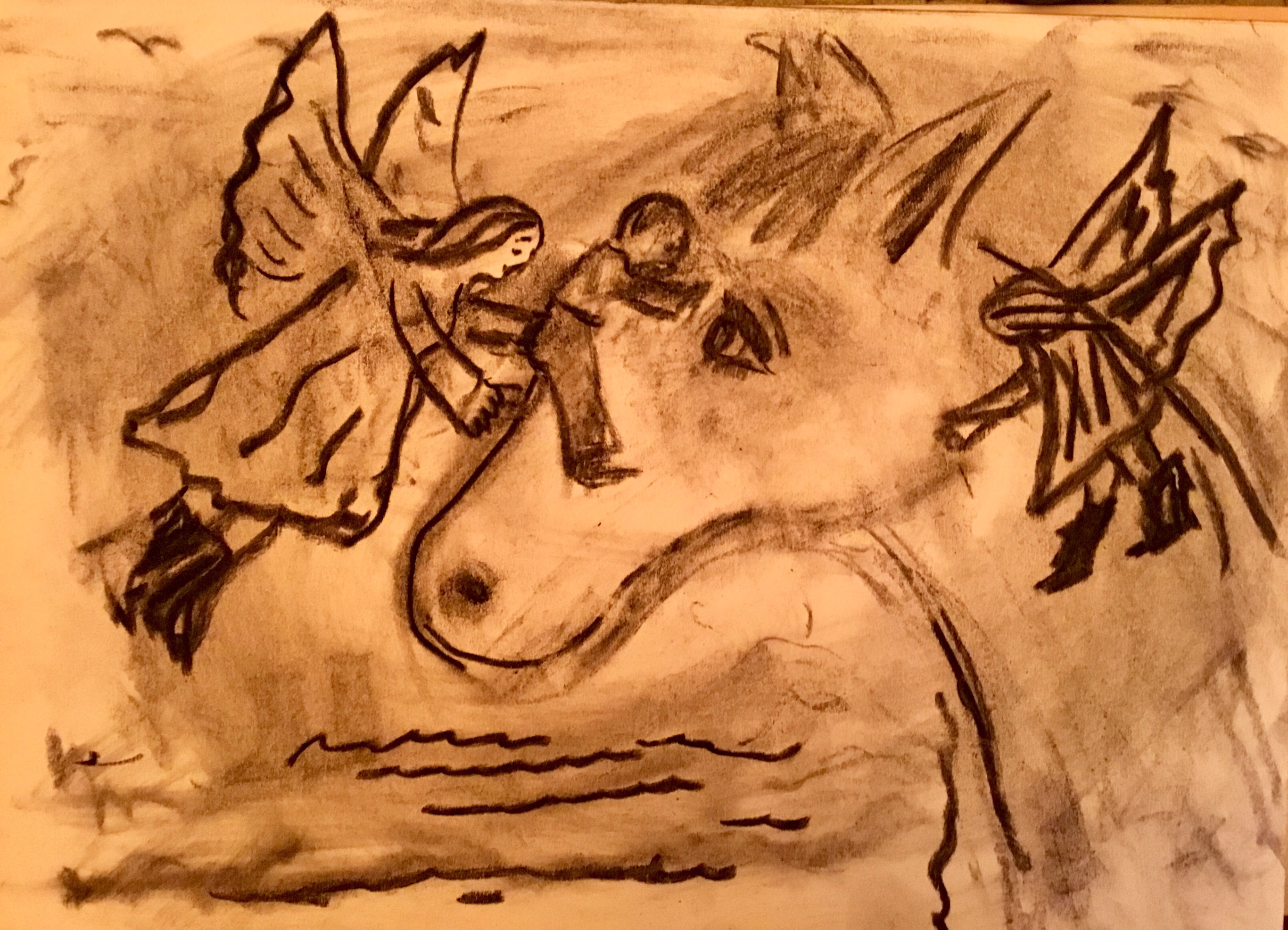‘Obadiah Gets Helped Onto a Horse,” Charcoal