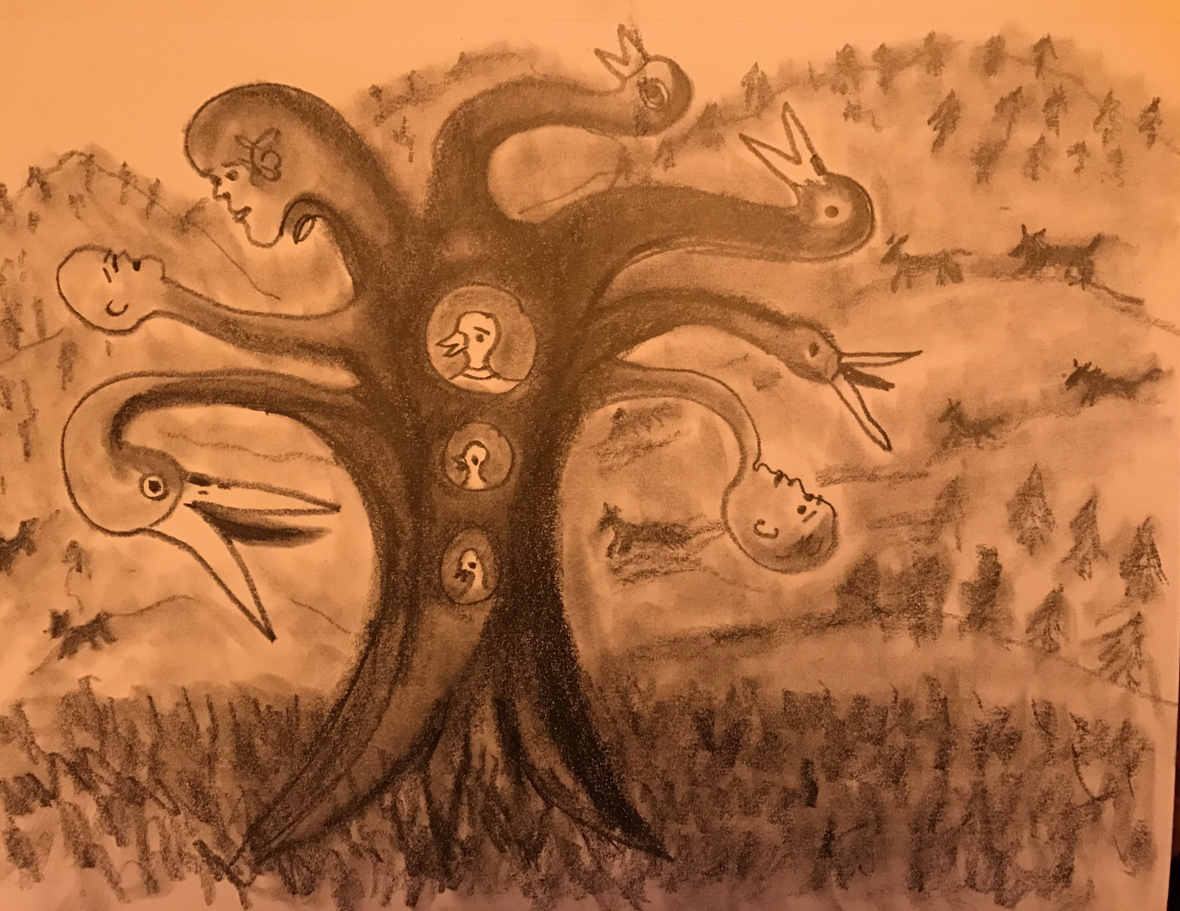 Tags: birds in tree, Karin Gustafson drawing, manicddaily