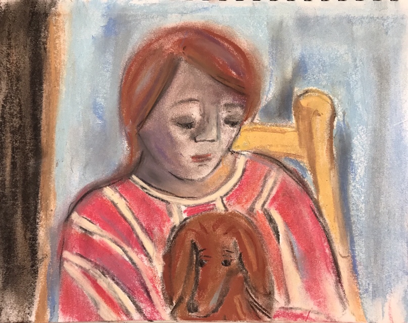 Looking at Bonnard, thinking of Trixie. Pastel and charcoal on paper, 2018, all rights reserved.
