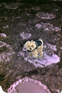 So my father and I huddled the little body over to the car me kissing its nose in an almost surreptitious way as I wondered frantically whether you could do mouth-to-muzzle resuscitation on a dog, but somehow felt too embarrassed even in extremity to ask, while my dad in his own extremity careened us to the vet’s, and when the vet was closed, our family doctor, heaving with every gear shift, even as I kind of calmed, feeling, after my lap wet with warm, that surely if the dog peed she must still be alive.