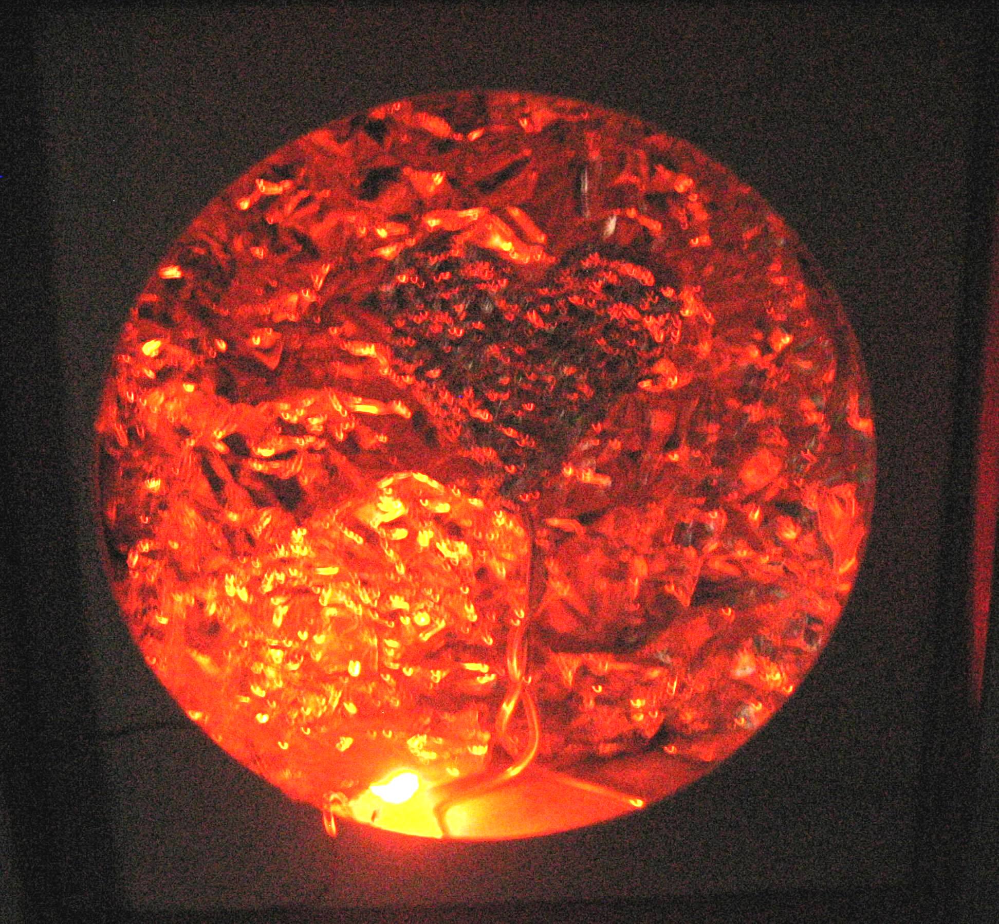 Which brings me back to the heart in the box.    Creativity, memorability, glow, glimmer, really do not require so very much:  tin foil, a  discarded box, a hole cut in some white paper, a very small battery, a teeny light, darkness.