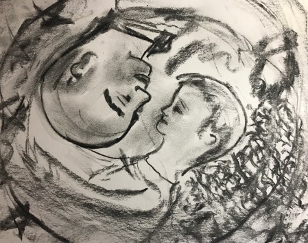 Not sure which way is up; charcoal on paper, 2017, all rights reserved.