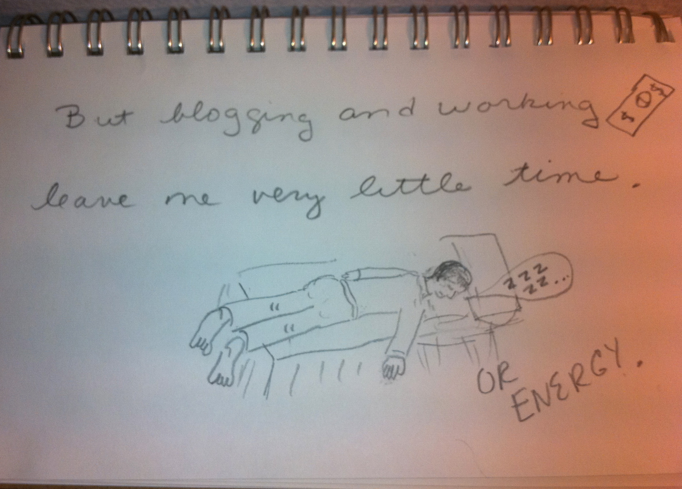 I have made 473 posts and gotten over 10,000 views. (A small number for a blog, but amazing to me.) Writing the posts, drawing the pictures, and putting them out into the world with a click of a button has been fascinating; doing this on a daily basis has been both stressful and freeing–yes, it’s been a lot of work, but because of the pace, I have been continually forced to move on from whatever I just did to embarrass myself.