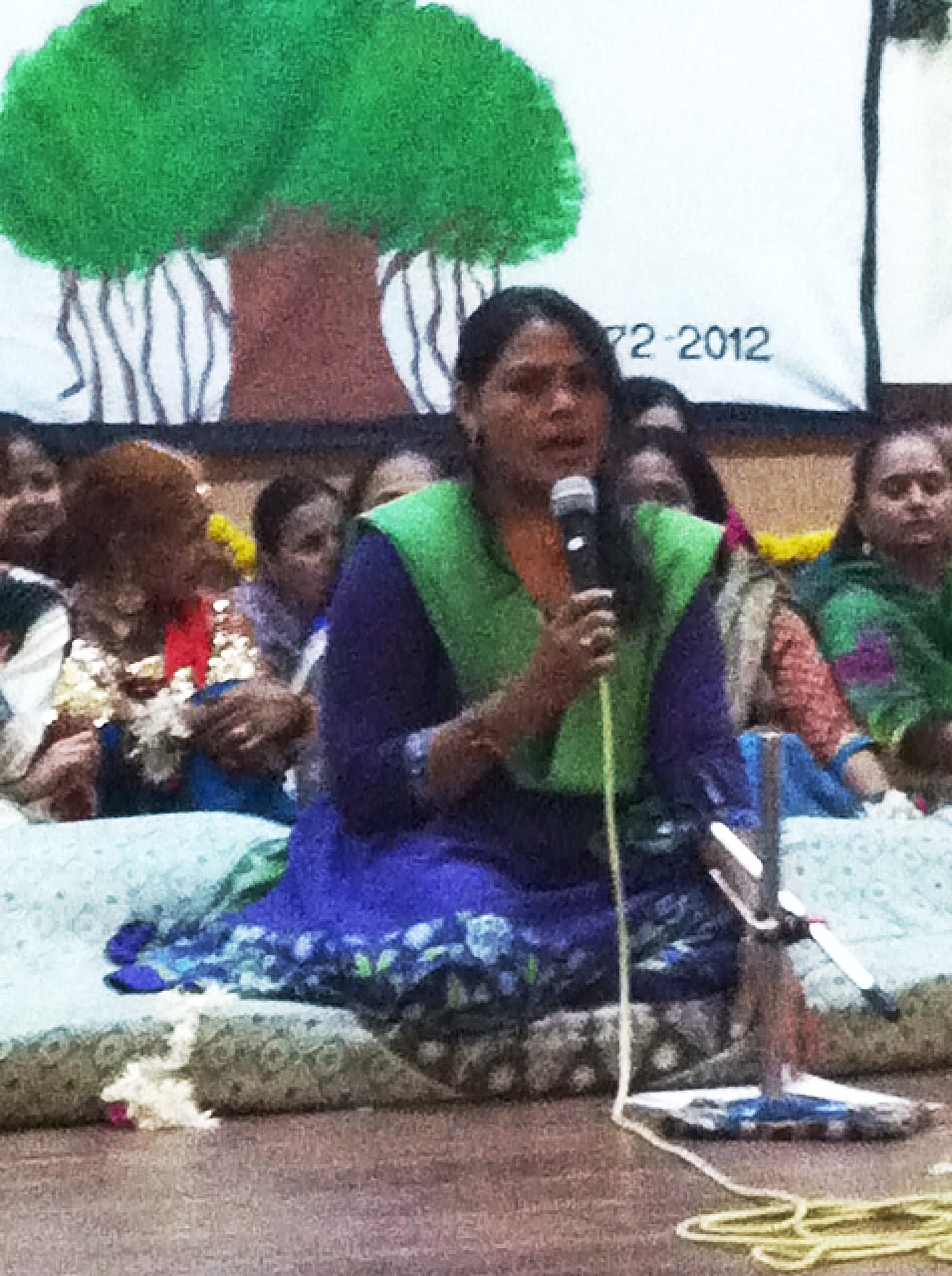 Ela Bhatt, now fairly elderly but unbelievably sweet and dignified, spoke (and even sang briefly). The women adore her, often using her name in their verse. It is clear that they feel that she (and SEWA) have given them a chance in life.