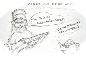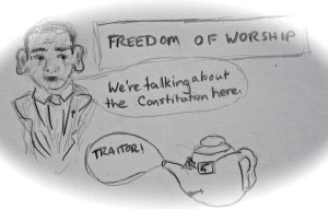 Tags: double standard on Constitutional Rights, Freedom of Worship, manicddaily, ManicDDaily cartoon, Manicddaily pencil drawing, Palin and Obama on Constitutional Rights, Right to Bear Arms, Tea Party Double standards