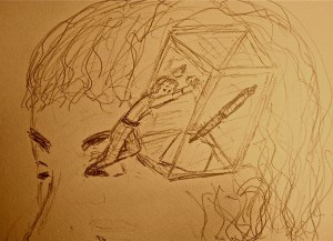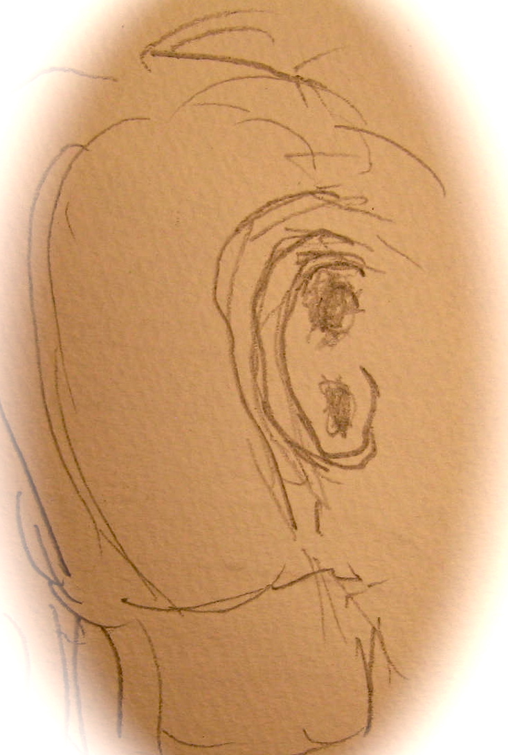 (This is a re-creation–I actually erased that drawing in case he turned around.)