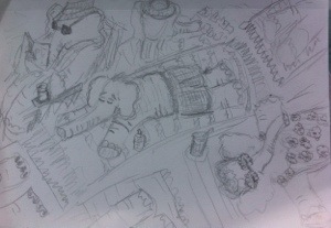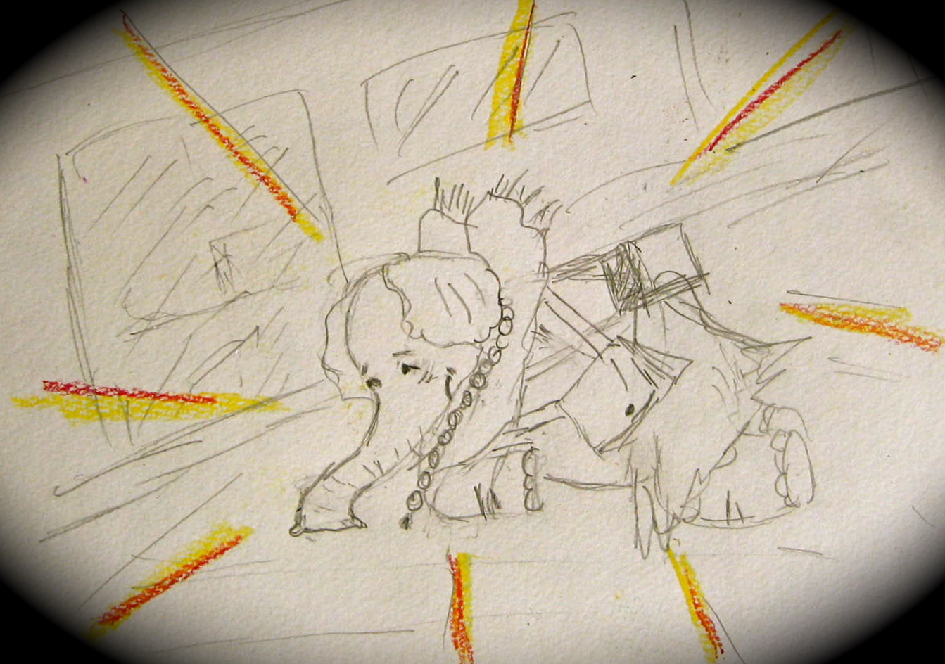I chuckle inside, feeling suddenly energized by snarkiness. But now I see with absolute certainty, even though just from the corner of my eye, the dull sliding silver of the train. Still moving, meaning it’s pulling in, but there’s that baby carriage and mother, and now an older lady too, and it’s a narrow entrance, but there are three turnstiles–THREE!–the rectangular lights of the train windows slow–