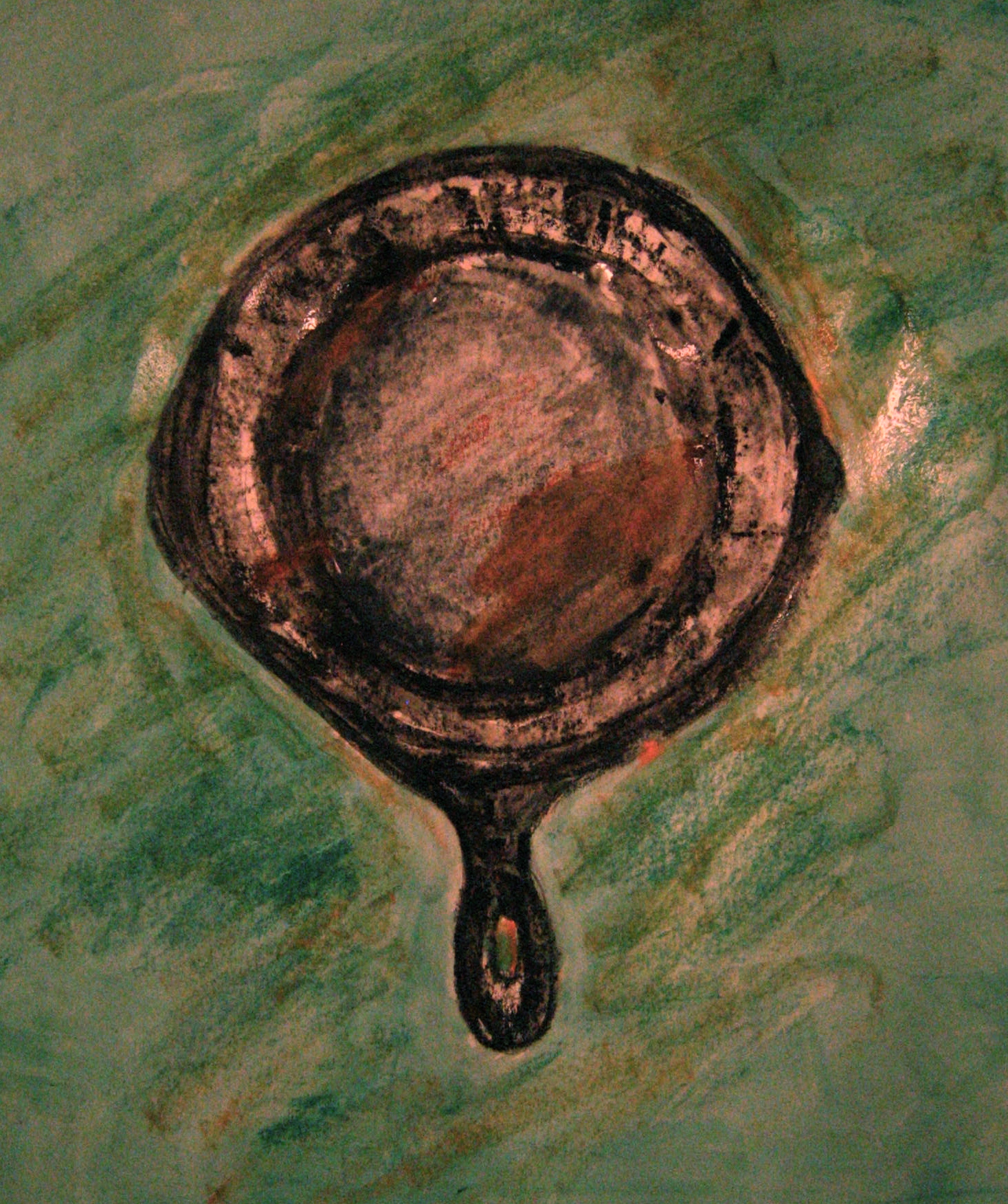 Years later–when the daughter sits beside her mother (now grandmother, maybe even great)–knitting perhaps, or, more likely, bemoaning the decline of current days, and asks how this tradition was handed down, the mother/grandmother pauses, thinks, and explains that she just always had a very small frying pan.