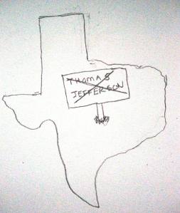 Example:  Thomas Jefferson (not liked because he coined the term “separation between church and state”) will be cut from a list of figures whose writings inspired revolutions in the 17th and 18th centuries.  (I guess the Declaration of Independence doesn’t count.)  (Is it worth noting that there are no historians on the Texas School Board?)
